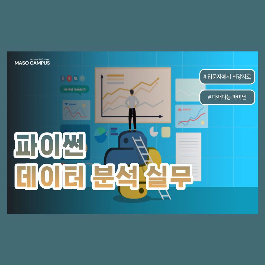 마소캠퍼스의 <파이썬 데이터분석 실무> 강의를 수강하면, 파이썬을 이용한 데이터 분석 능력을 마스터하실 수 있습니다.