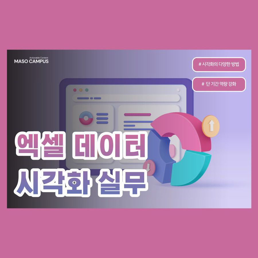 엑셀은 크게 서식(Form) 시각화와 차트(Chart) 시각화로 나뉩니다. 서식(Form) 시각화의 경우 전달하고자 하는 메시지가 무엇인지 명확하게 표현할 수 있어 상대방이 한눈에 핵심을 파악할 수 있게 만들어줍니다. 차트(Chart) 시각화의 경우 막대형 차트와 꺾은 선형 차트를 학습한 것을 바탕으로 상황에 맞는 다양한 차트를 다루는 방법을 익힐 수 있습니다.