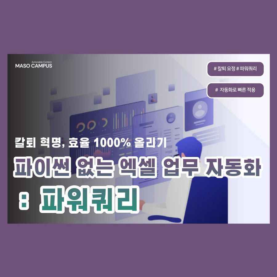 ♦ 칼퇴 혁명: 파이썬 없는 엑셀 업무 자동화로 효율 1000% 올리기 과정은 엑셀 고급 분석 과정으로 엑셀과 데이터에 대한 기본적인 지식을 요합니다.